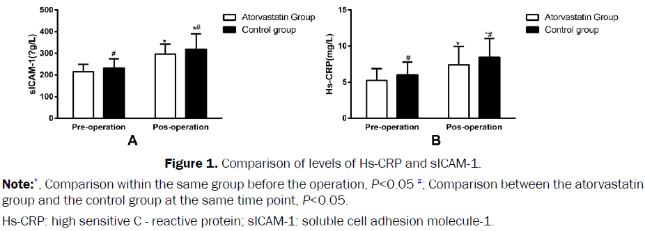 Table 2: Comparison of levels of Hs-CRP and sICAM-1 in atorvastatin group and control group.