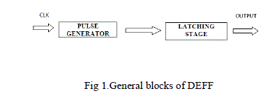 | The proposed clock gated sense amplifier flip flop have three stages. These are pulse generator stage, sensing stage and latching stage. Pulsed generator stage as produce the triggering pulse. The sensing stage is to sense the triggering pulse of the signal. The latching stage as to produce the output signal. |