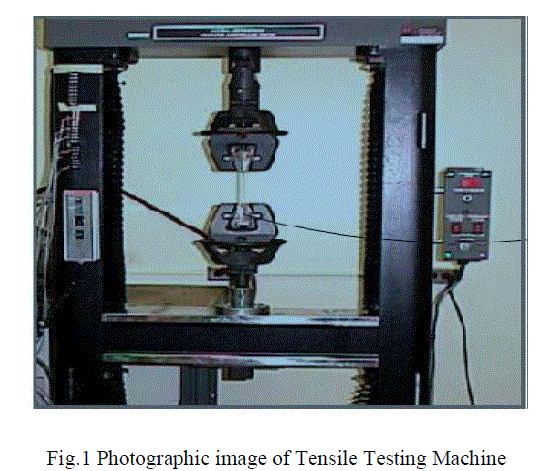 | The composite sheets fabricated were tested for its tensile (ASTM D-638) and impact (ASTM D-256) properties as per ASTM standards. The Hounsfield Universal Testing Machine was used for performing the tensile test (Fig.1). The test specimen was positioned vertically in the grips of the testing machine. The testing was carried out at the crosshead speed of 0.5 mm/min. As the specimen elongates the resistance of the specimen increases which was detected by a load cell. An IBM computer connected with tensile testing machine was utilized to record the test data’s. The impact test was carried out using pendulum type Impact tester as per ASTM D 256-10. The test specimen was supported as a simply supported beam and broken by a single swing of a pendulum. |