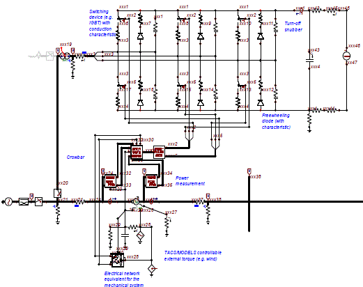 | Fig. 4 illustrates the DFIG-based wind turbine model in ATP [20]. This model is used for accurate simulation of the DFIG-based wind farm. Also, Table 4 summarizes the data used to parameterize the DFIG. |