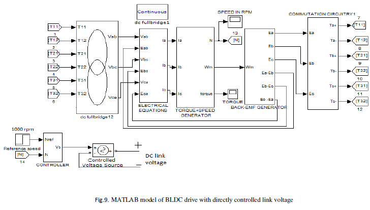 | The MATLAB simulink model of controlled voltage source fed BLDC motor is shown in fig.9. |